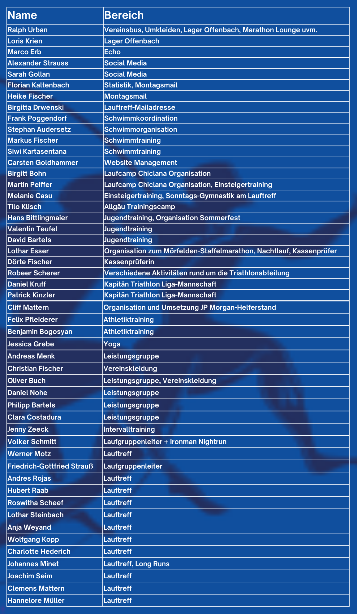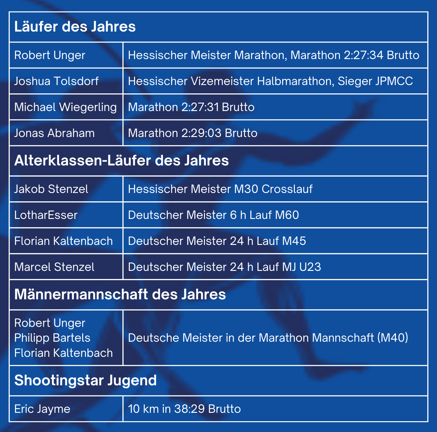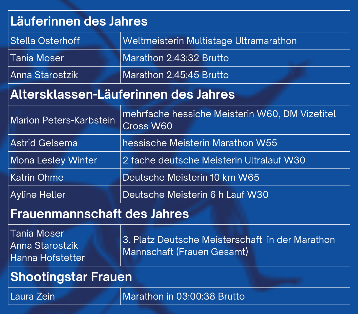 Gedankt wurde allen, die sich besonders für den Verein engagiert haben. Ob Laufgruppenleiter, Athletiktrainer, WEB-Administratoren oder Redakteure - alle haben zum Erfolg des Vereins beigetragen.