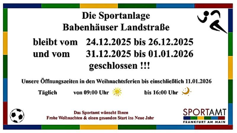Öffnungszeiten Sportanlage in den Weihnachtsferien
